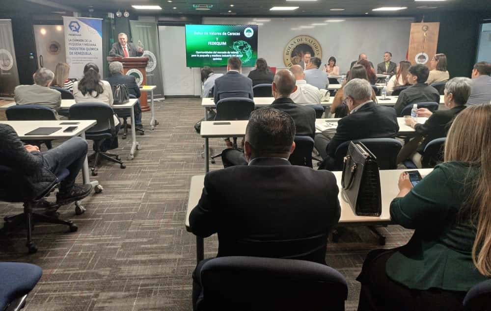La actividad, celebrada el martes 30 de septiembre, contó con la destacada presencia del presidente de la Bolsa de Valores de Caracas, José Grasso Vecchio, quien ofreció palabras de apertura y reafirmó las bondades y oportunidades que representa para las empresas el mercado bursátil. Por su parte, Mikel Chivite, presidente de Fedequim, agradeció que la Bolsa de Valores de Caracas abriera sus puertas a la cámara e invitó a las empresas a tener en consideración el mercado de valores como una interesante opción de inversión y financiamiento.